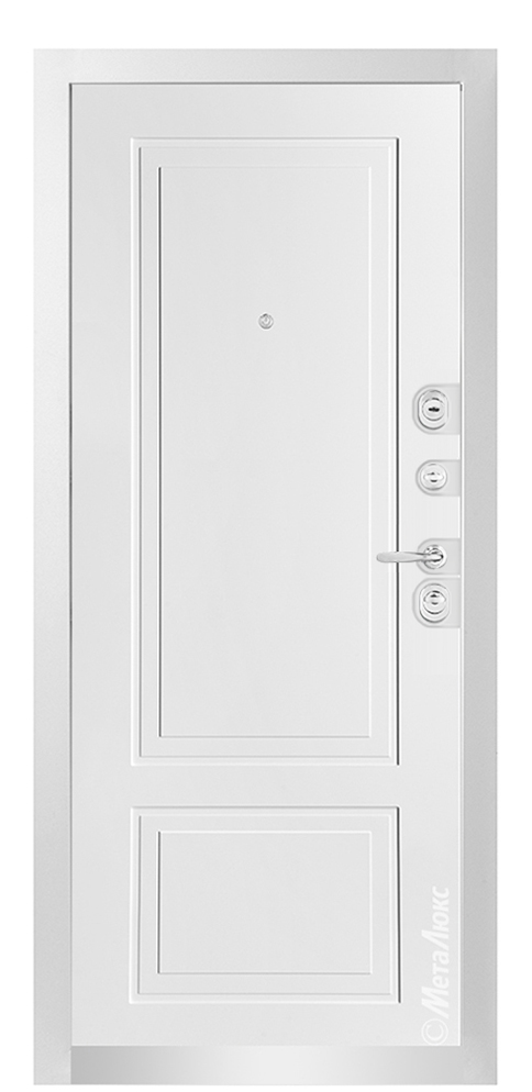• Дополнительную жесткость конструкции придает особое расположение ребер (2 вертикальных, 2 горизонтальных) • Усиление зоны петель легированным металлом квадратного сечения • Усиление замковой части металлическим карманом • Противосъемные ригели, диаметром 16 мм (3 шт.), исключают вероятность взлома путем среза петель • Особый профиль полотна (края полотна завальцованы, что придает дополнительную жесткость и исключает возможность вскрытия двери силовым отжимом) • Безмолдинговая система крепления внутренней панели позволяет добиться безупречного внешнего вида изделия. Особая конфигурация профиля полотна при необходимости дает возможность осуществить замену внутренней панели |